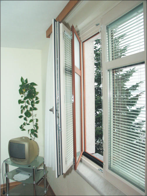 Holz-Alu-Verbundfenster - SOLITÄR 102Ideal beim Fenstertausch in Altbauten, wo der Schwerpunkt auf Ensembleschutz liegt und eineAnbringung von Rollläden oder Raffstores nichtmöglich ist.Die Aluminium-Vorsatzschale ist wegklappbarund ermöglicht damit die leichte Reinigungder Jalousielamellen im Scheibenzwischenraum.Die äussere Scheibe ist stärker dimensioniert.Die beiden inneren Scheiben sind alsSuperwärmeschutzverglasung mit Edelgas-Füllung ausgeführt und gewährleisten dadurcheine optimale Wärmedämmung.Auf Wunsch sind die Fensterflügel aussen miteiner Alu- und innen mit einer Holzblendeausgestattet, um im aufgezogenen Zustand das Lamellenpaket zu verdecken.